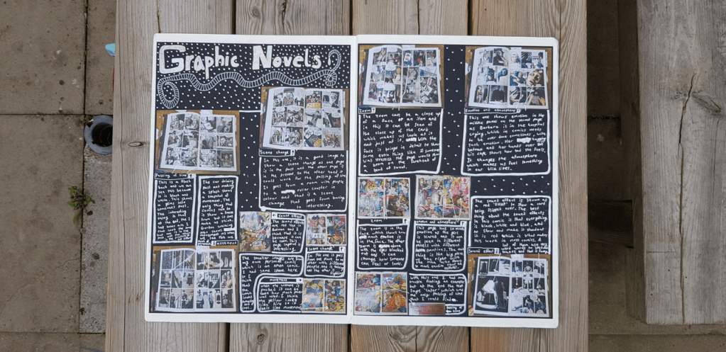 In this project, at Gloucestershire College, I studied the artistic theory behind graphic novels to design my own comic page from a source film.