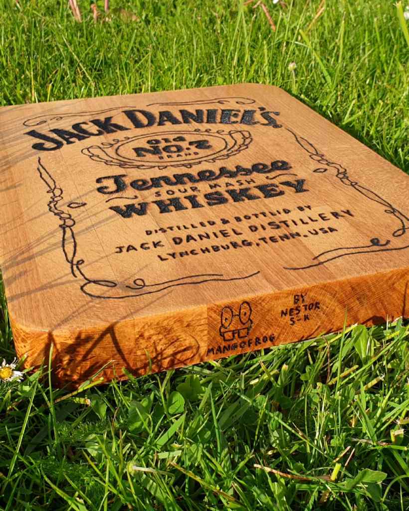 I am a big fan of the Whiskey company Jack Daniel’s, so I thought I would create a chopping board in the style of their label.