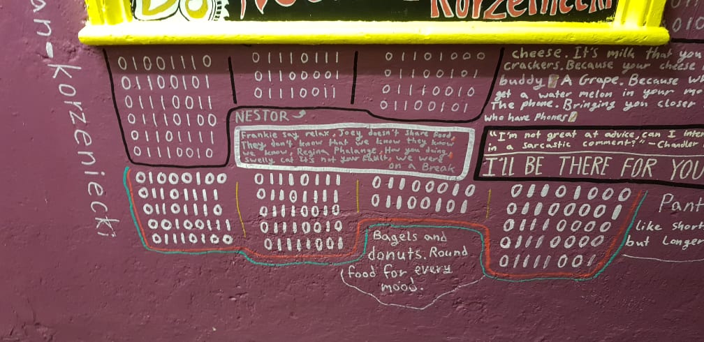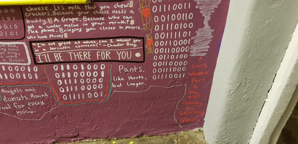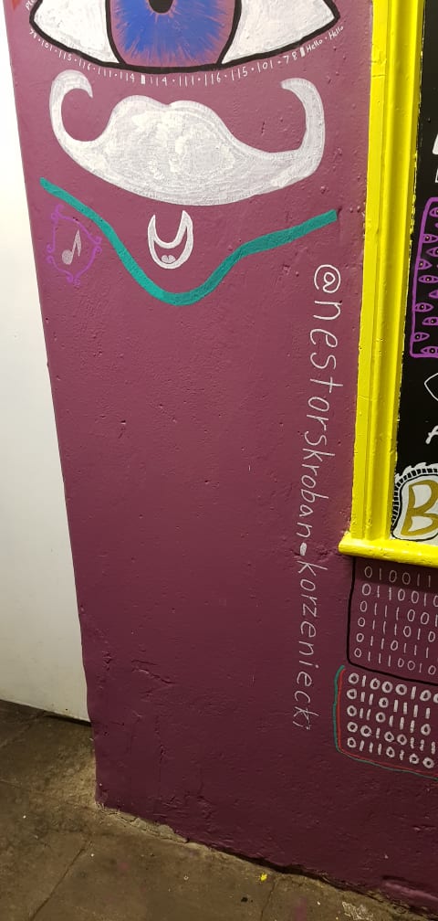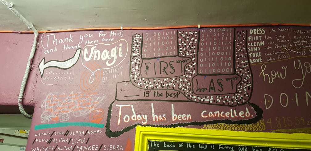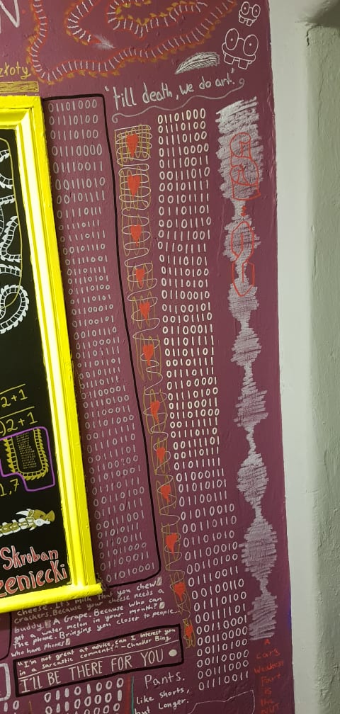 The Cavern, a coffee shop and live music venue for young people in Gloucester City Centre, liked the idea of a mural on a wall in the hallway when they heard that I was an art student. They were flexible about when I could work on it, so it took me a few months to complete between my time at college.