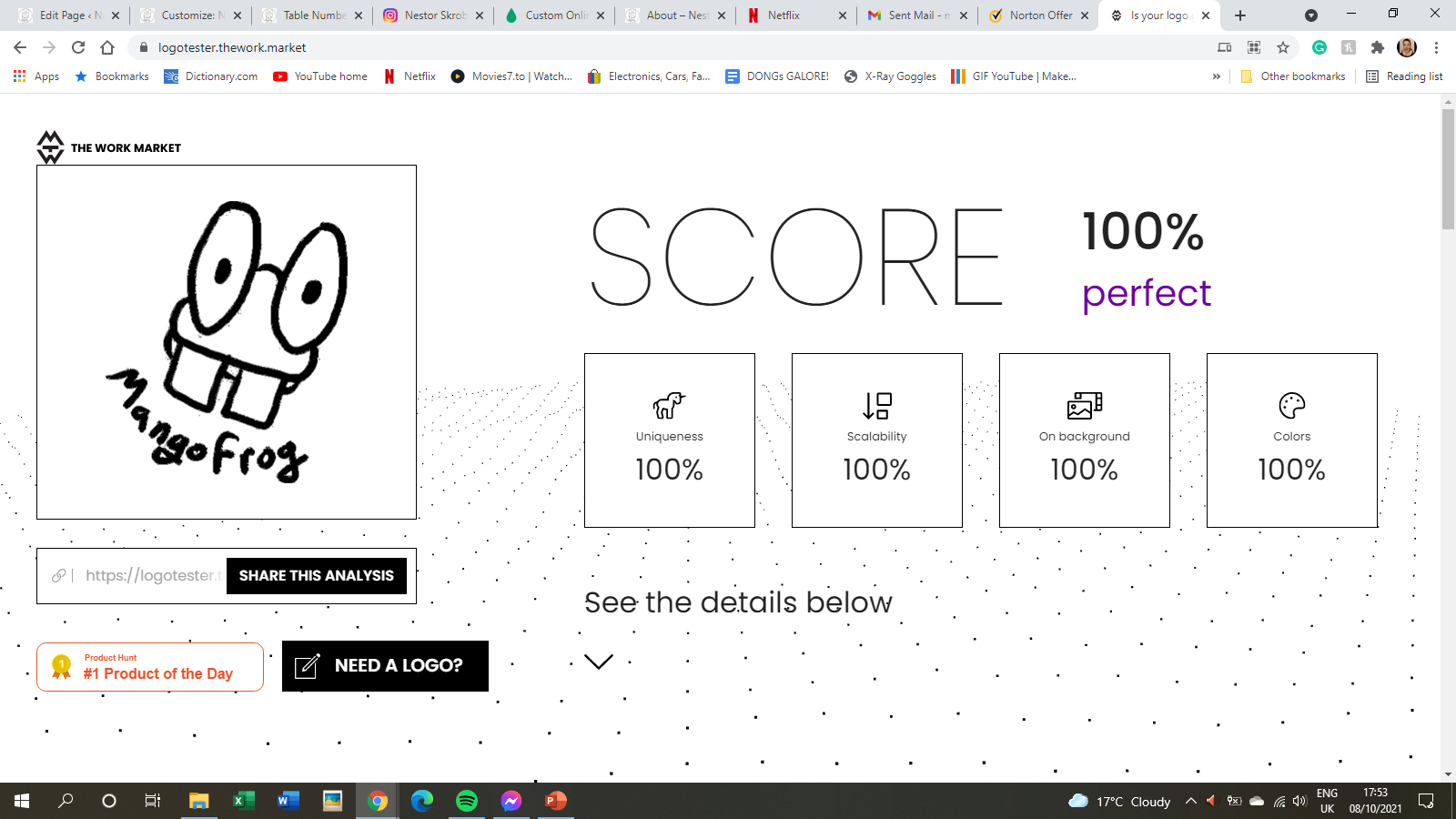 I used a free logo tester which recognised MangoFrog as very unique, scoring 100% in every assessment category.